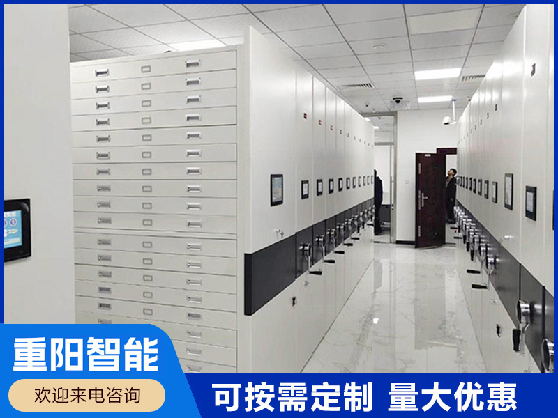 底图密集柜又称图纸密集柜:用来放置图纸用的铁制抽屉柜;按标准A型图纸大小一般可分类为0号底图柜;1号底图柜;2号底图柜等,柜体采用抽屉式结构,一般采用1.0mm以上的铁板生产制做。 底图柜采用设有特别导轨的滚轮式结构抽屉,存取灵活方便,帛屉拉出时能始终保持水平状态,适用各类型底图平。